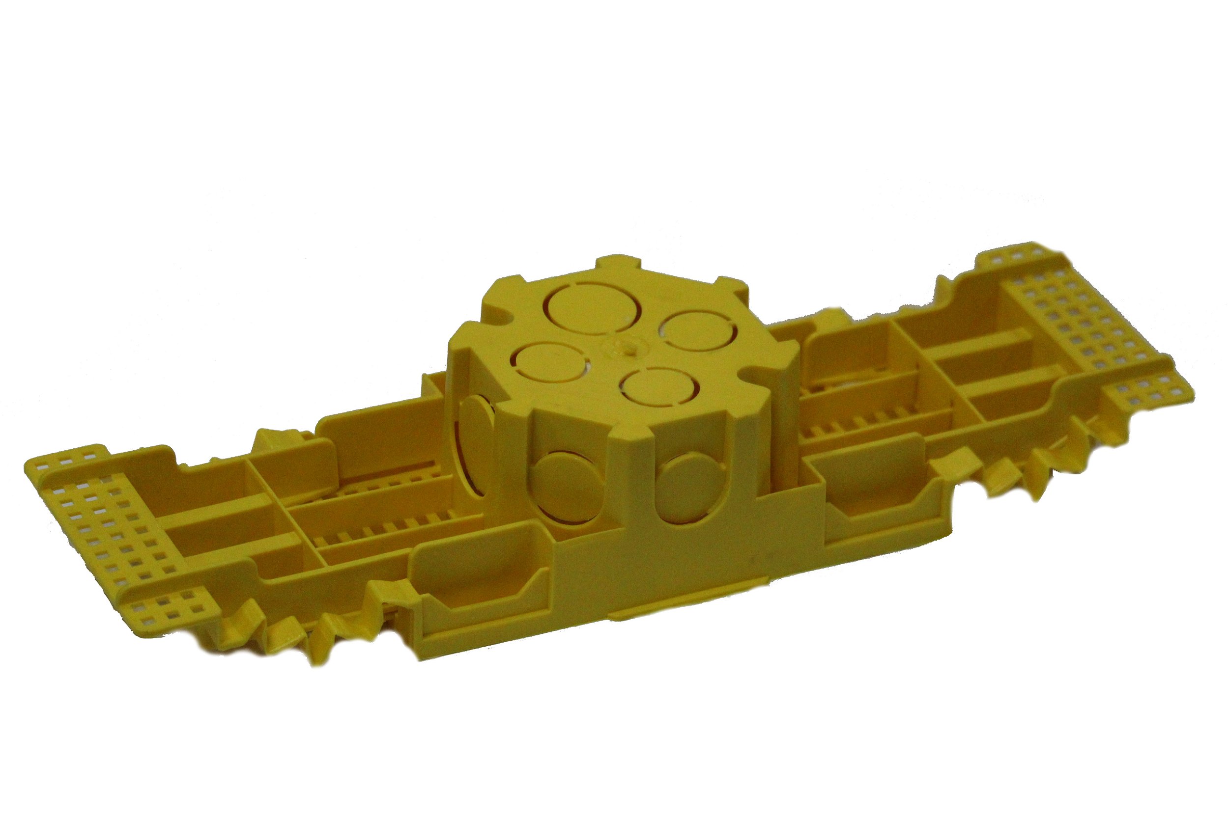 Material de Alta Resistência: Fabricada em PVC de qualidade superior, a caixa suporta as condições rigorosas da obra, resistindo a impactos e à pressão do concreto sem deformações.